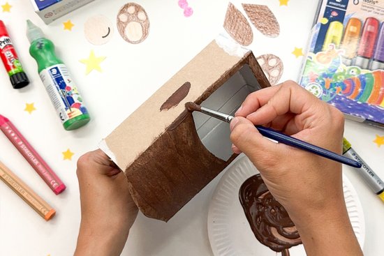 3. Egy ecset segítségével fessük barnára a tejesdoboz egészét.