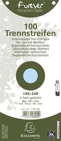 Az Exacompta Forever® vízszintes elválasztólapok ideális megoldást kínálnak dokumentumok rendszerezésére és áttekinthető tárolására.-100 darabos kiszerelés-méret: 105 × 240 mm-világoskék szín-újrahasznosított kartonból készült-180 g/m2 vastagság-12 részes osztással-perforált kivitel-alkalmas gyűrűs mappákhoz és iratrendezőkhöz-lehetővé teszi a színkódolt rendszerezést-ideális dokumentumok csoportosítására és elkülönítésére