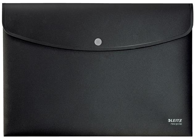 Irattartó tasak, A4, PP, patentos, LEITZ "Recycle", fekete