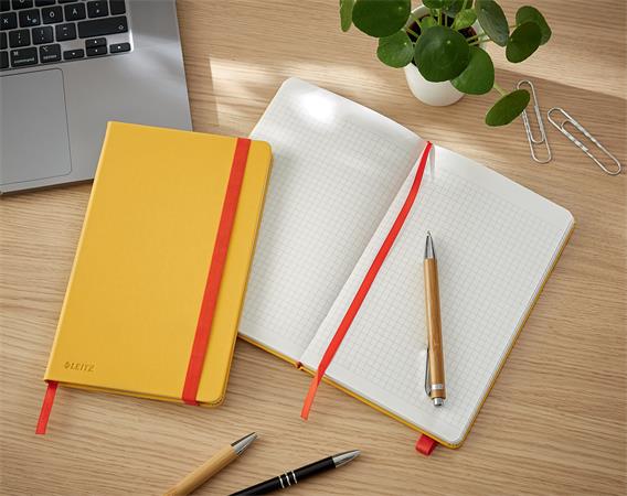 Beíró, A5, kockás, 80 lap, keményfedeles, LEITZ "Cosy Soft Touch", melegsárga