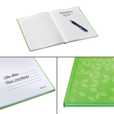 Beíró, A5, kockás, 80 lap, keményfedeles, LEITZ "Wow", zöld