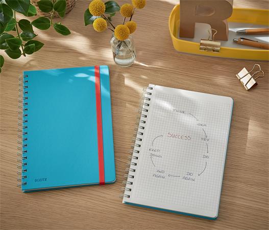 KezdőlapIrodaszerekIrodai papíráruFüzetek, gyűrűskönyvbetétekSpirálfüzet, B5, kockás, 80 lap, LEITZ, "Cosy Soft Touch", nyugodtkék