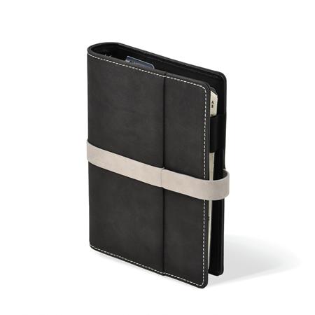 Kalendárium, gyűrűs, betétlapokkal, "L", műbőr, SATURNUS, "225" fekete-szürke