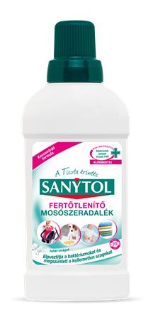 A Sanytol, a klór nélküli fertőtlenítés szakértője egy olyan terméket fejlesztett ki, amely minden hőmérsékleten elpusztítja a baktériumokat, élesztőgombákat és vírusokat a textíliákból. Nem tartalmaz klórt és olyan összetevőket, amelyek károsíthatják a szálakat és módosítják a ruha színét. (1) Olyan textíliákon, melyeket a használati utasítás betartásával ennek a terméknek a hozzáadásával mostak ki.