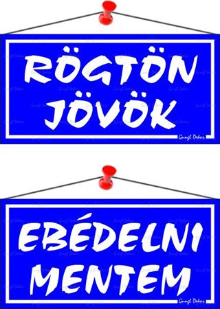 Rögtön jövök/Ebédelni mentem információs tábla