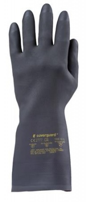 Vegyszerálló, mikroorganizmusok ellen védelemmel ellátott védőkesztyű.-anyaga: polikloroprén és természetes gumi anyag-pamutbolyhozott belső-0,72 mm vastag-hosszúság: 32 cm-csúszás ellen érdesített tenyér-szín: fekete-CE minősítés-méret: 8/M